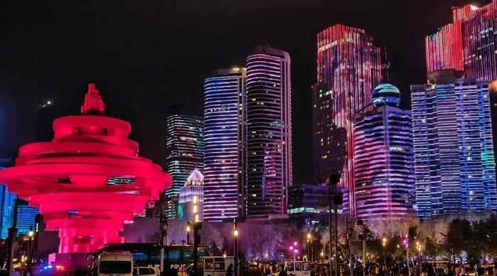 在夜幕中,“琴岛之眼”如同一轮圆盘,散发着迷人的色彩,令人震撼。