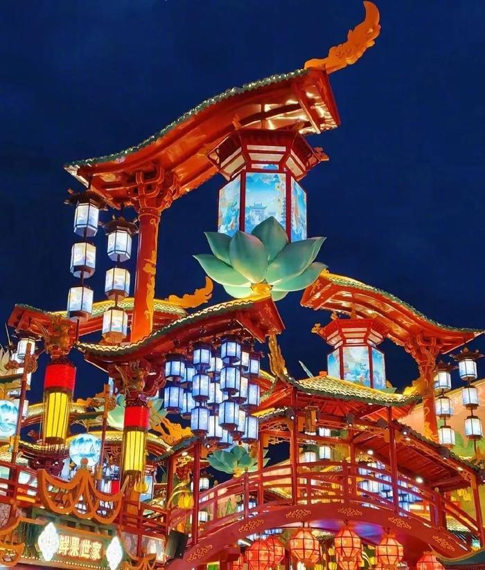 大型夜游舞台将传统与现代相融合,互动打卡装置以创意与艺术碰撞出火花,还有各种小吃商铺,在游玩时可以尽情享受美味。这个好吃、好玩又好逛的新晋国潮夜游目的地,为夏夜增添一份惊喜。
