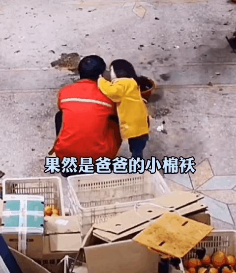 陪着父亲加班的女儿见状,一步一步地靠近,把脸贴在父亲的脸上,心疼地给了他一个亲吻的鼓励。