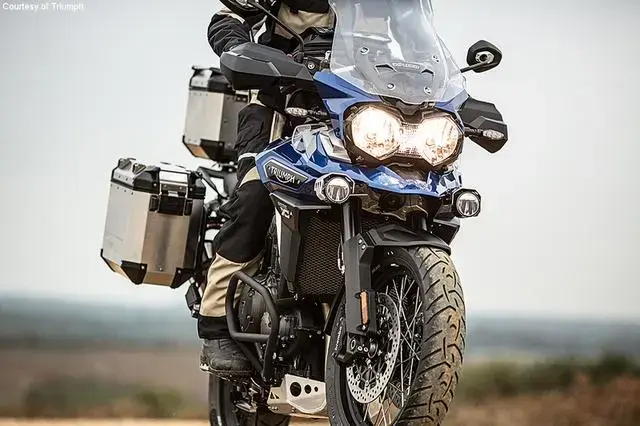 Triumph Tiger Explorer XRT:Triumph Tiger Explorer XRT是一款轻量级冒险旅行摩托车,配备1,215cc直列三缸发动机,巡航控制,弯道ABS,风挡,WP悬挂装置和轴驱动装置。