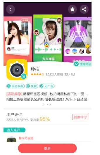 数据显示,papi酱从去年10月开始通过360手机助手中的秒拍创作短视频以来,目前微博粉丝已经超过1600万,原创视频总播放量已经超过3亿次,单条视频最高播放量超过了2725万,均集播放量达到753万次。因此,秒拍也因papi酱火爆了很长一段时间,在360手机助手中的下载量一下飙升到802万次。通过秒拍,papi酱制作了以娱乐、搞怪、吐槽为主的视频,对话题的运营也显得如鱼得水。让更多网友认识了这个美丽与才华集一身的女子。