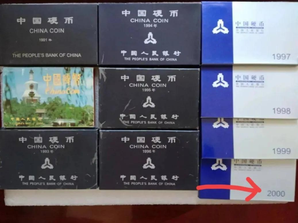 接下来说一下第二种:牡丹一元。它是1991年开始发行,共发行了十年时间,其中2000年的牡丹1元最珍贵。在2023年的拍卖会上,拍出了1.1万多元。它一共发行了32万枚,全部装帧在《中国硬币》册子里,面向全国大众发行。