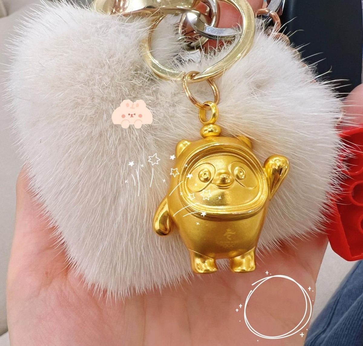 马凡舒还分享了自己的冰墩墩钥匙扣。和其他人的冬奥吉祥物不同,马凡舒的这个钥匙扣整体是黄金打造,看上去憨态可掬,如此大的体积想必克重不轻,价值起码要上万块。