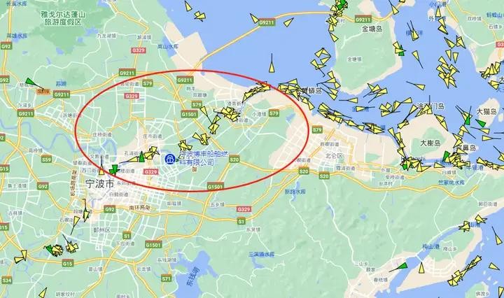 从船讯网上,可以很明显地看出钱塘江和甬江入海口的航运区别: