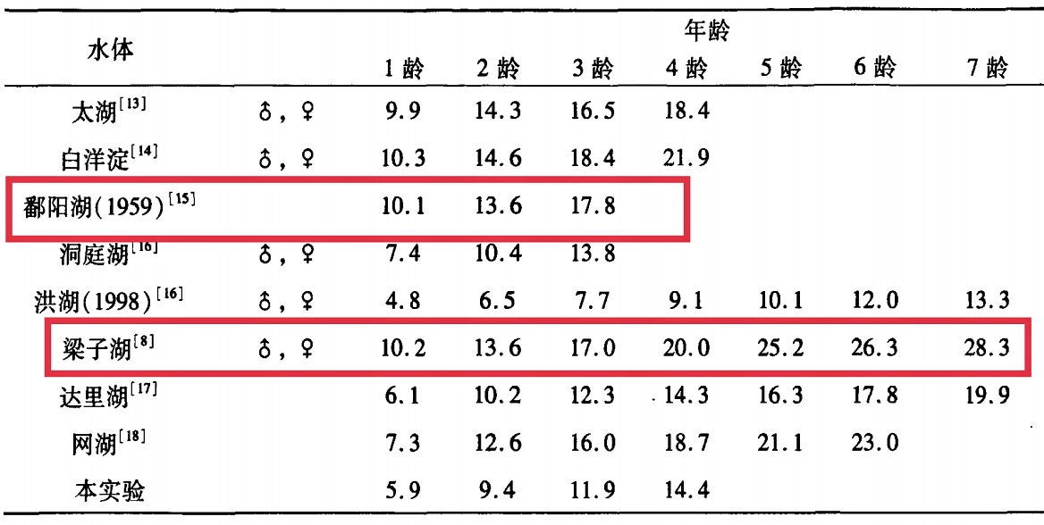 中国主要淡水湖中鲫鱼的年龄和体长数据