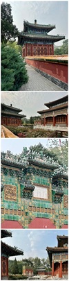 北京•西城•小西天建筑群中心是四方形大木构重檐亭子的大殿建筑,东西南北四个正面是大型琉璃石牌楼,每个牌楼通过石桥与中心四方大殿连接,四角为四座重檐木构角亭,五个亭子和四个牌楼牌楼建筑形成暗藏的佛教金刚界曼荼罗。