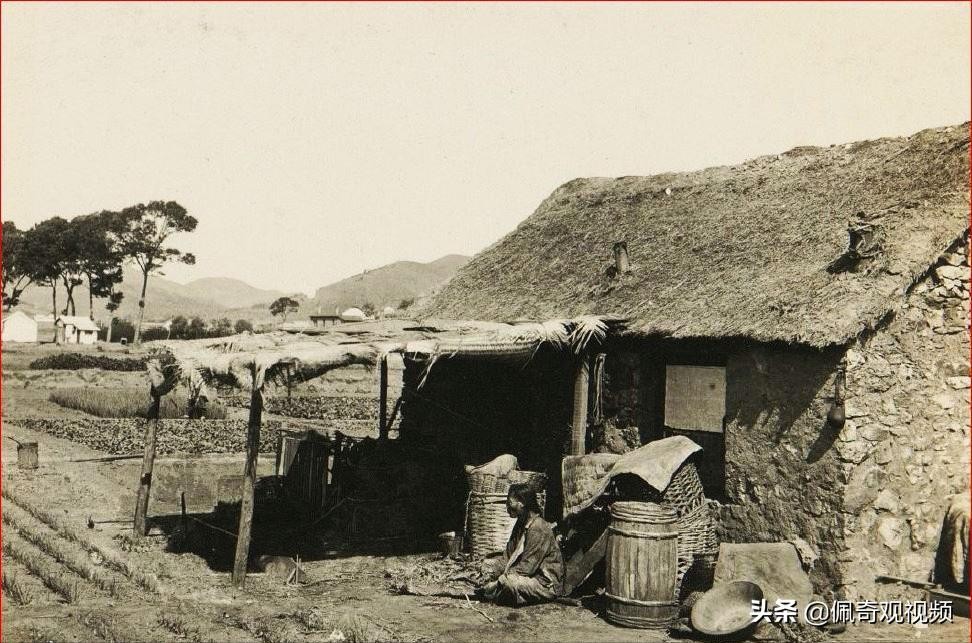 拍摄于1920年--较为富足的农家,屋外带着娃的妇人