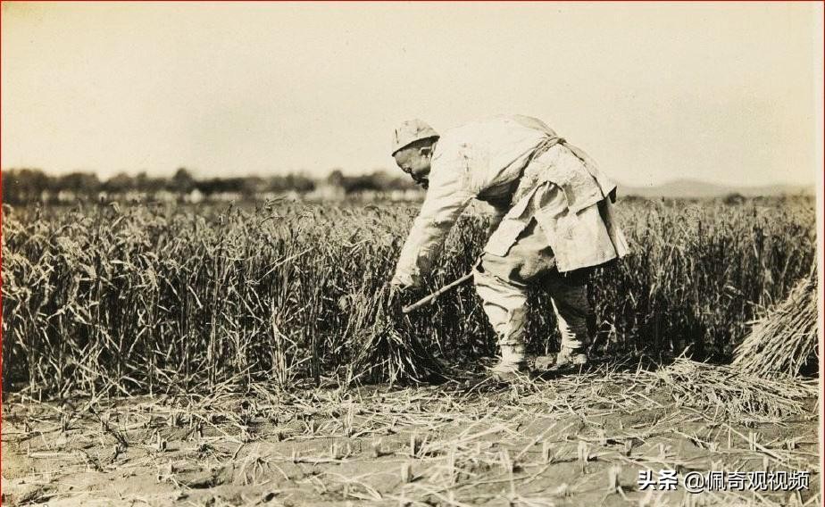 拍摄于1920年--老伯正在收割丰收的东北大米