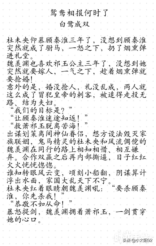 第一本:《鸳鸯相报何时了》作者:白鹭成双