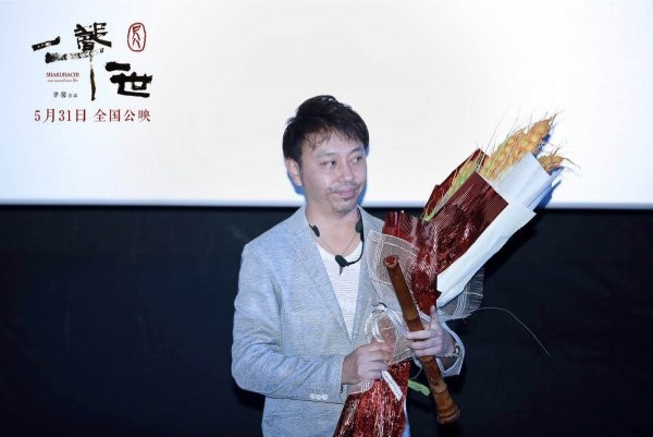 电影放映结束后,日本知名尺八演奏家佐藤康夫惊喜上台,为大家演奏电影同名主题曲《一声一世》。一曲完毕,现场的气氛更加高涨,许多迷弟迷妹纷纷奋力鼓掌。佐藤康夫说,尺八是源自中国的,传到了日本之后,在日本留了下来并发展到现在。“我一直希望尺八能回到中国,这样可以帮助大家学习了解尺八,尺八就是表达内心的一个很重要的工具,我觉得尺八是帮助我开拓人生道路的导师,是我人生中很重要的伙伴。”