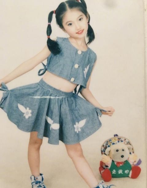 第一位出场的就是杨颖了,杨颖通过奔跑吧兄弟收获了一大批的死忠粉。很多人在杨颖成名后质疑杨颖是否曾经整过容,但杨颖也多次澄清自己是混血家庭出来的,所以长相可能会比普通亚洲人的五官要立体一些,在这张童年照中杨颖扎着两条马尾辫,显得非常的清纯可爱,而且脸上的五官也与现在相差无几,可谓是难得的天生丽质啦!