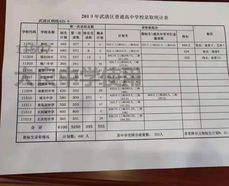 [中招报考] 2019年天津中考普高录取分数线汇总