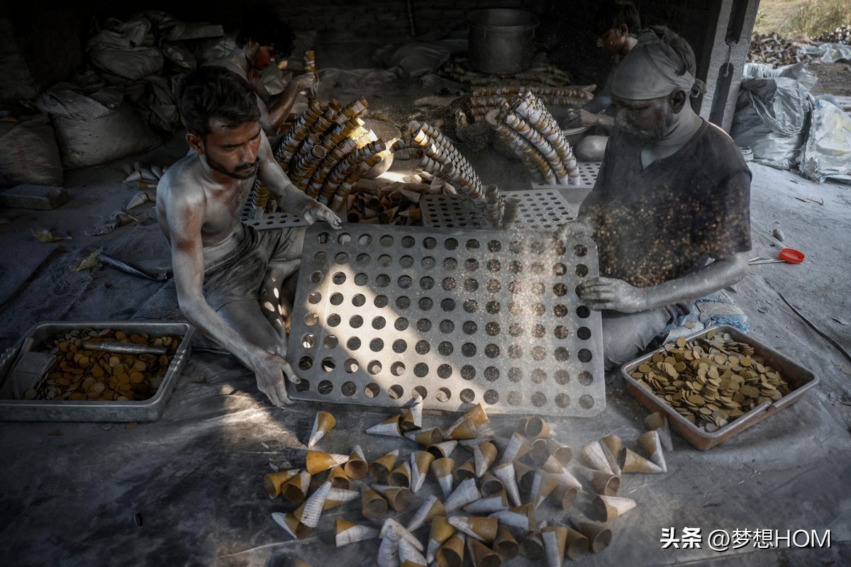 在艾哈迈达巴德附近的凡奇村,数千名工人手工制作爆竹,他们浑身涂满银色火药,每天工作长达16小时,工资仅为500卢比(约合5.95美元)。该行业基本处于非正式状态,安全标准松懈。