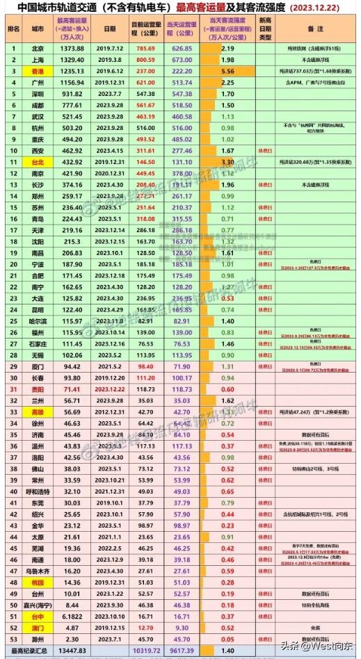 地铁实力大比拼,近日中国地铁最厉害的城市排名出炉