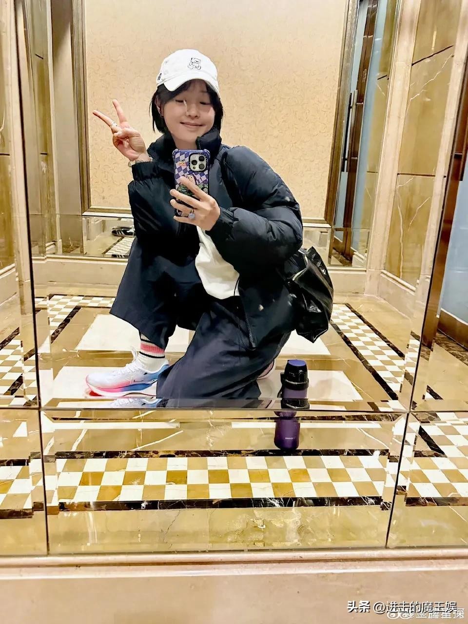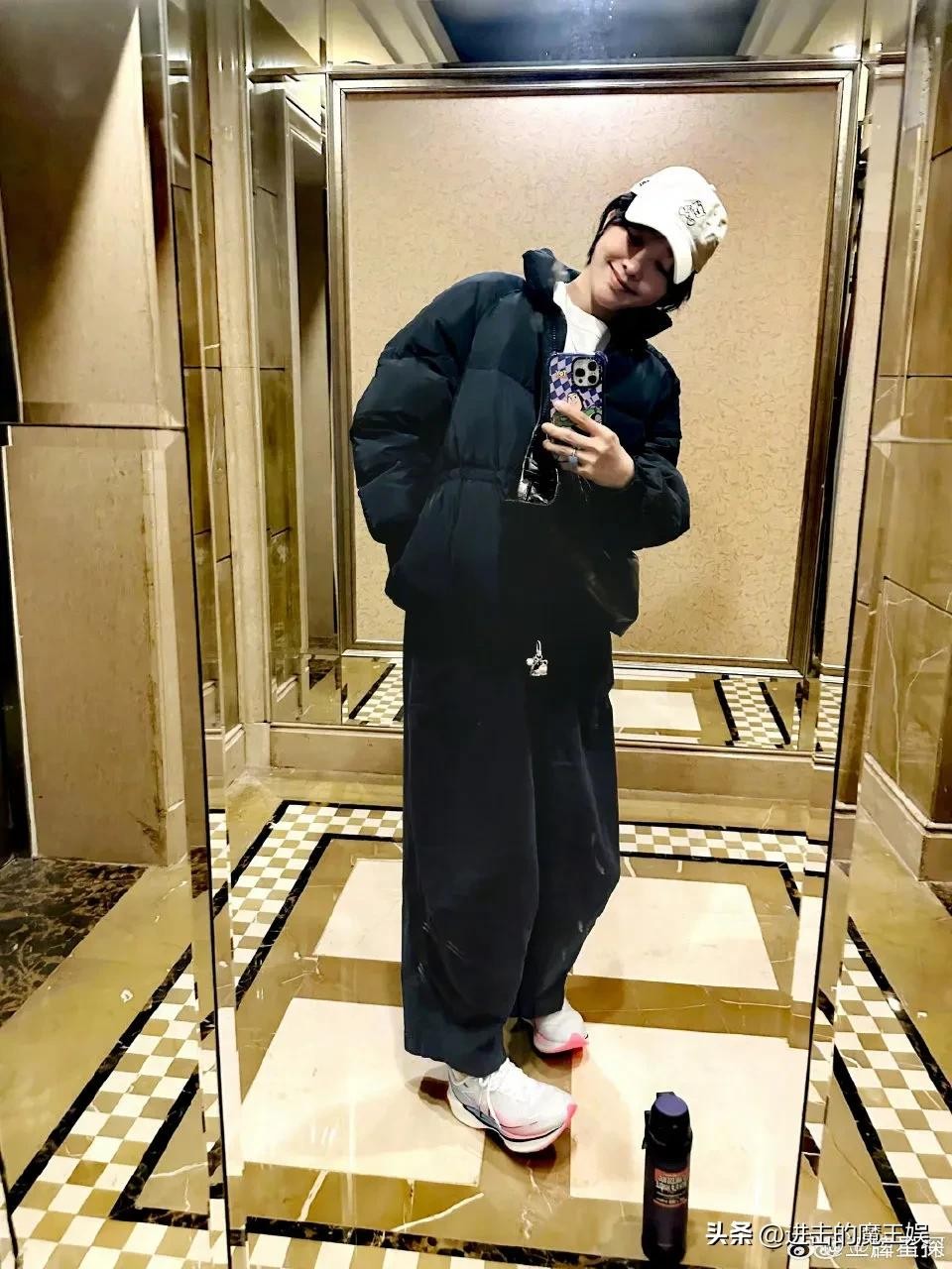镜头下的她,未着粉黛,面容却无比清爽,脚下穿着一双普通的运动鞋,像是个低调的健身达人。