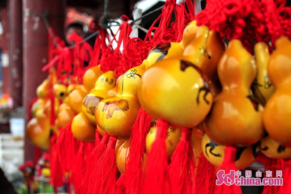 景区内文旅纪念品葫芦洋溢着节日的喜庆气氛。