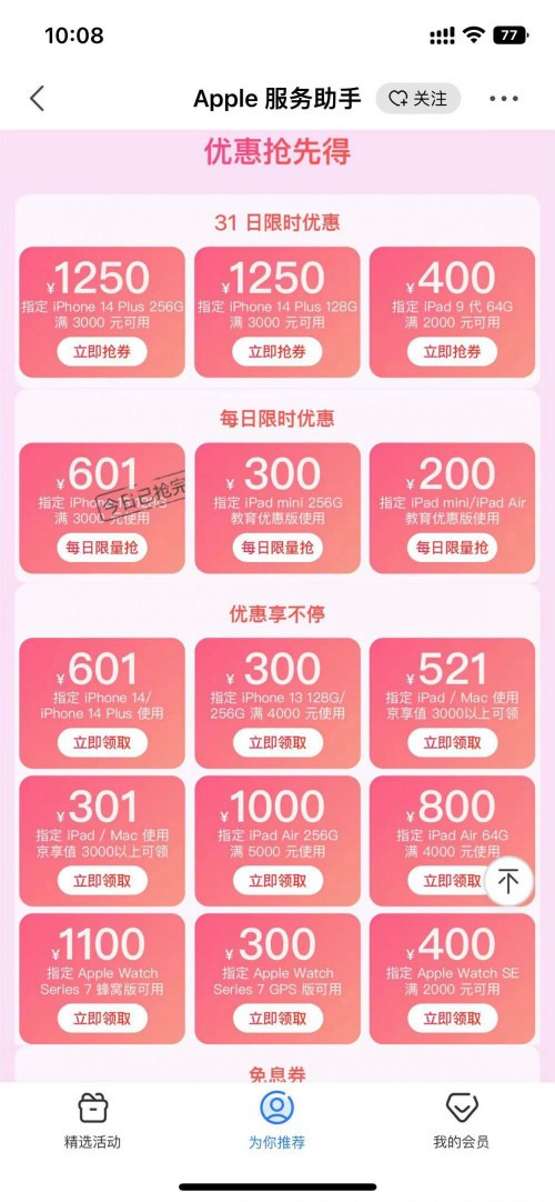 据悉,在电商平台iPhone 14 Plus优惠力度最大达到为1250元;iPhone 14 Pro/Pro Max,优惠350元;iPhone 13/13 mini,优惠700元。