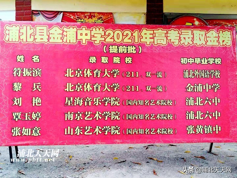 速看!浦北金浦中学2021年高考录取金榜(提前批)