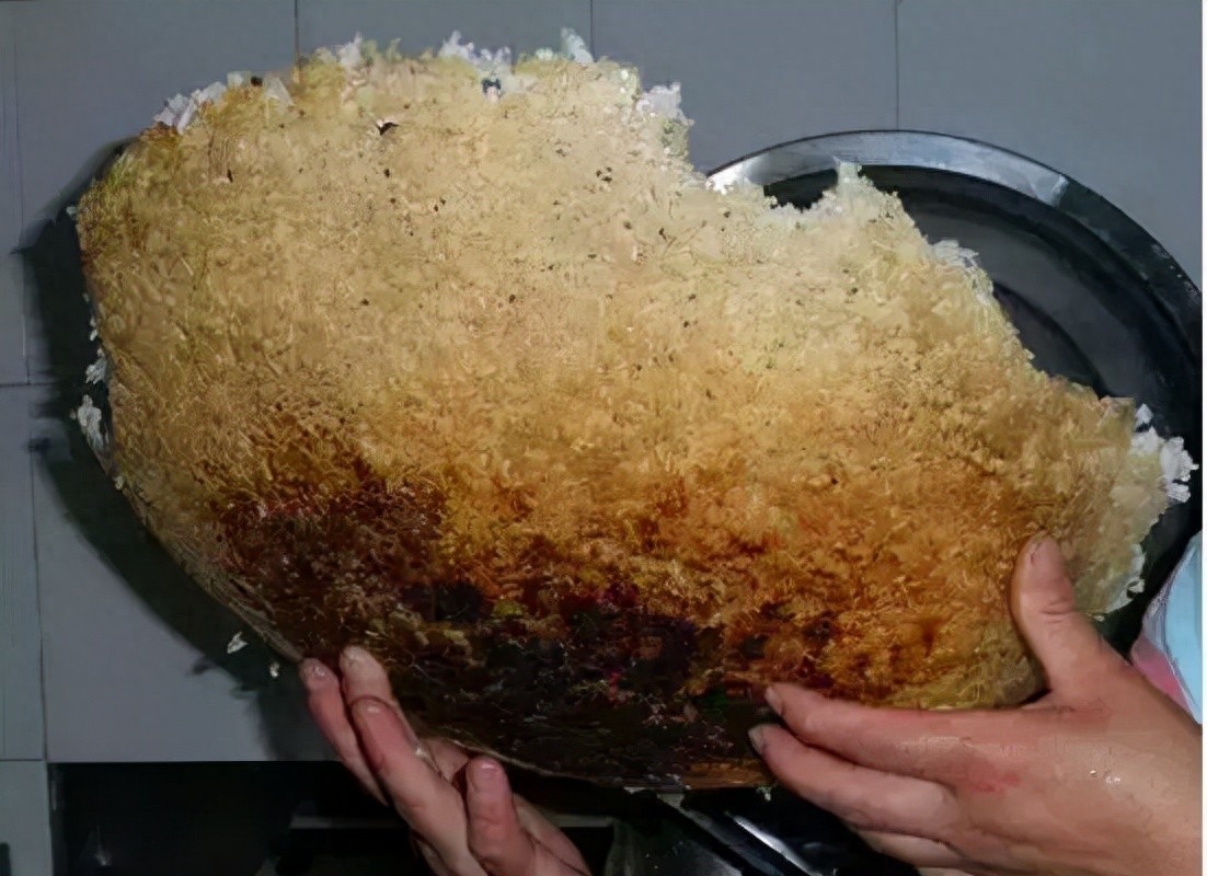 在过去农村用农村大锅闷饭就会有这样的像锅巴的饭嘎嘎。米饭粒黏在锅底,还有打糊涂的时候,也会有锅巴,非常的香非常的脆。你吃过吗?还有记忆吗,现在焖饭都用电饭锅了,现在吃不到了。