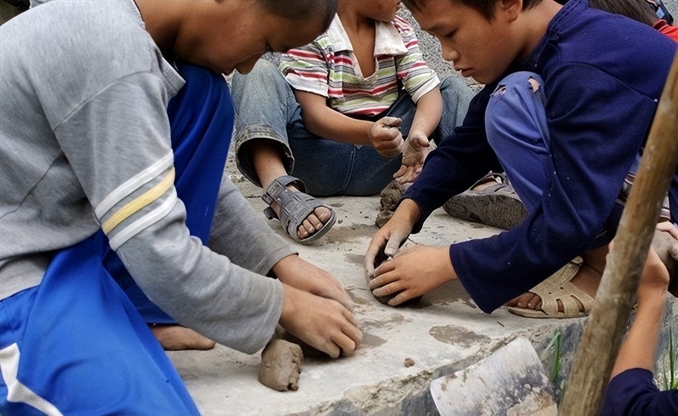 还有夏天的时候,我们经常要玩胶泥,那个时候玩胶泥玩得特别的嗨。捏大哥大,比谁摔得响,比谁胶泥多。你如果生活在农村,一定也玩过;
