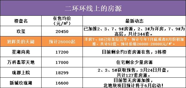 在这,不得不说一下旭辉美的天阙,前期价格23500,开盘非常火爆,现在洋房7、8#已经落位完毕,预计今年7月底或者8月份初加推,共计52套,预计价格26000-28000元/㎡。
