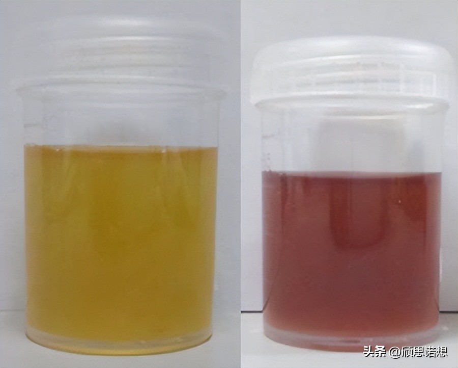 左图是第一天的尿液,右图是在阳光下暴晒三天后的尿液------图片来源于网络