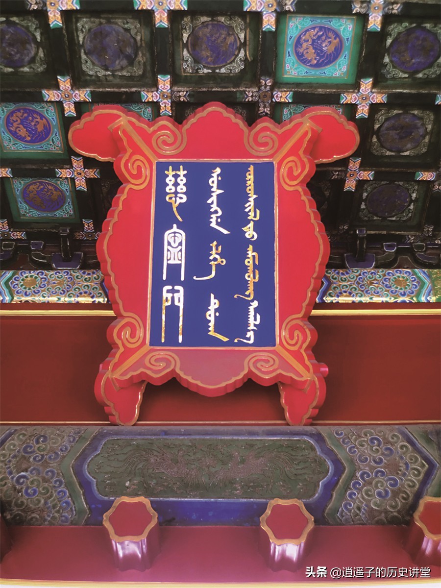 慈宁宫建筑群在清朝初期是孝庄太皇太后的寓所,特意在匾额上增添了蒙古语
