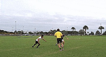 但是如果我们速度足够快,我们可以抢在防守队员之前触球,如果我们准备这样做的时候请记住,防守队员也很可能拿到球。