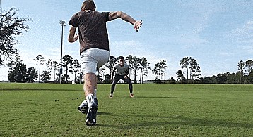 当我们面对防守队员的时候,沉肩迈步让我们看上去要向一个方向加速。