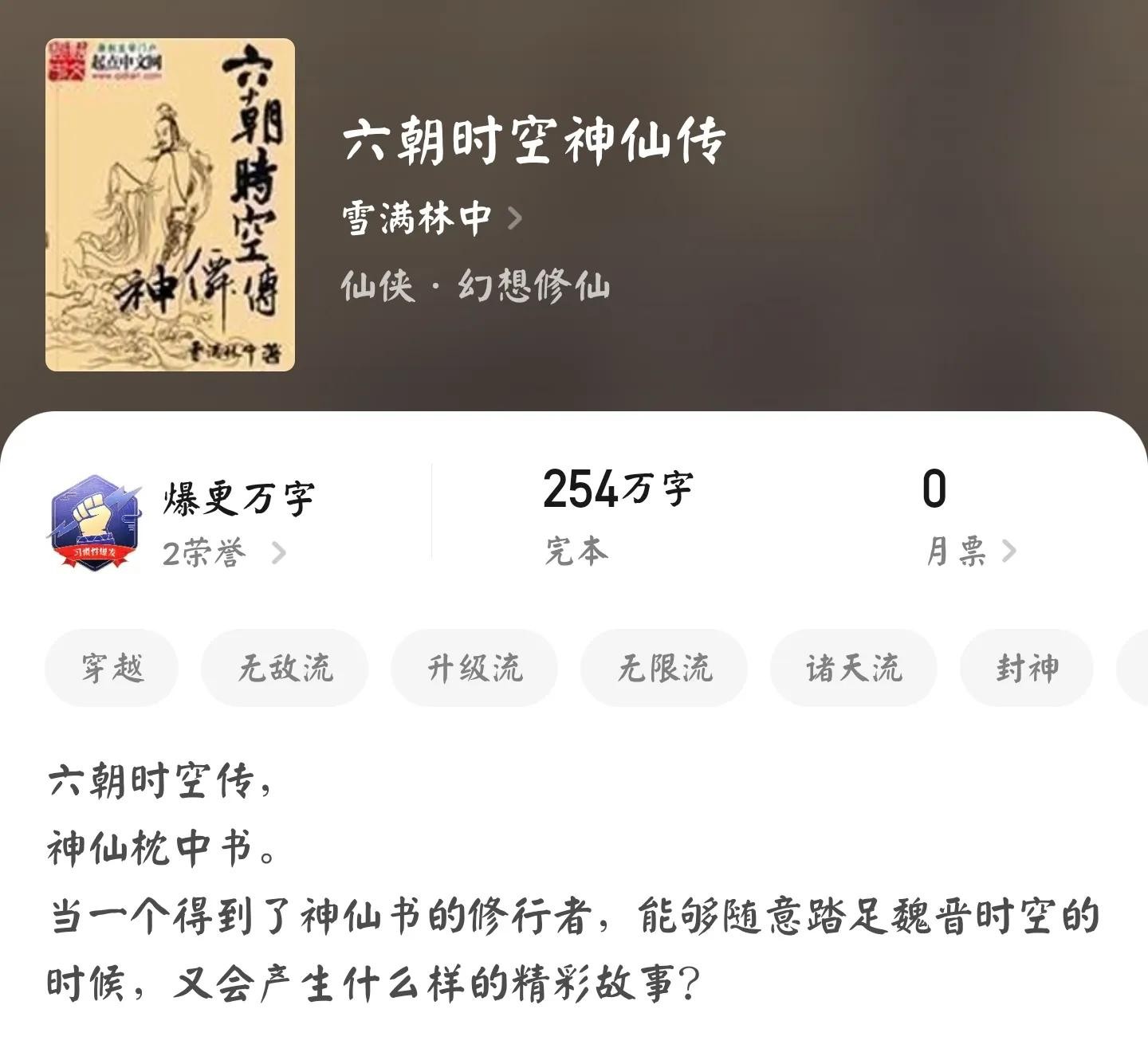 第五本《六朝时空神仙传》作者:雪满林中,南北朝背景,传统道法小说。对传统道法感兴趣的可以看看。