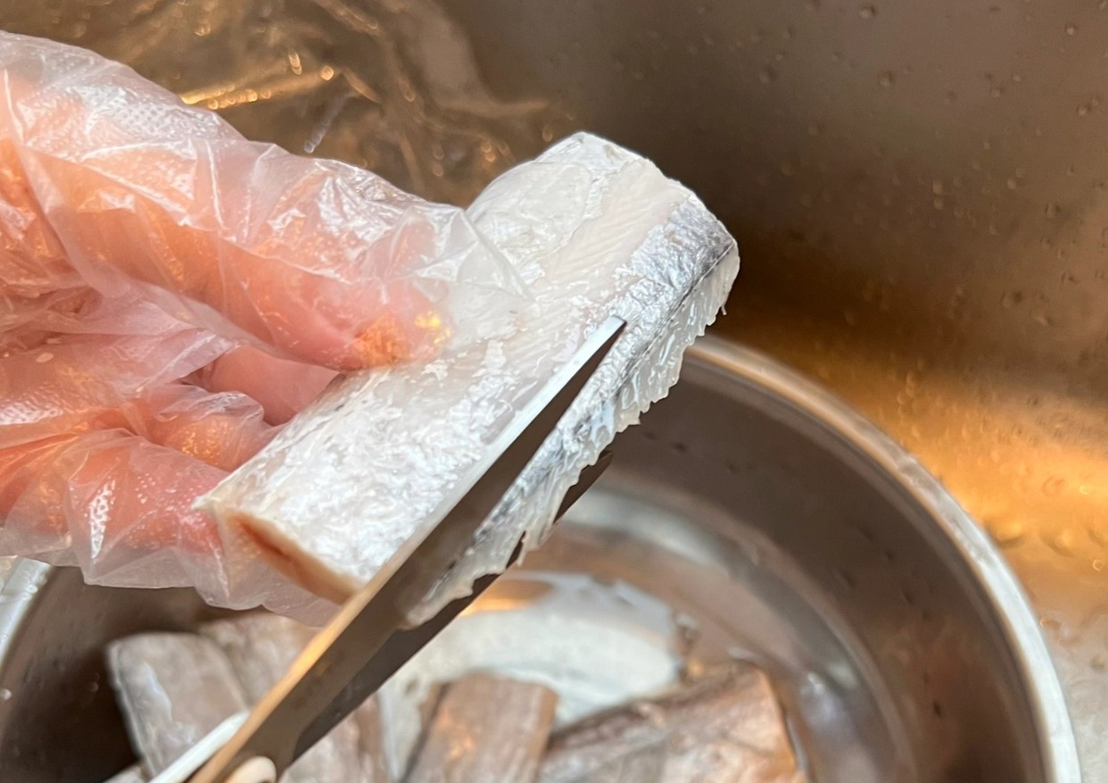 鱼鳍直接用手扯开就可以了,冷冻的话,用剪刀剪掉。