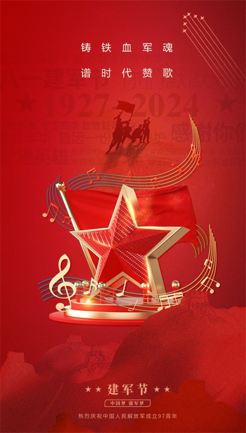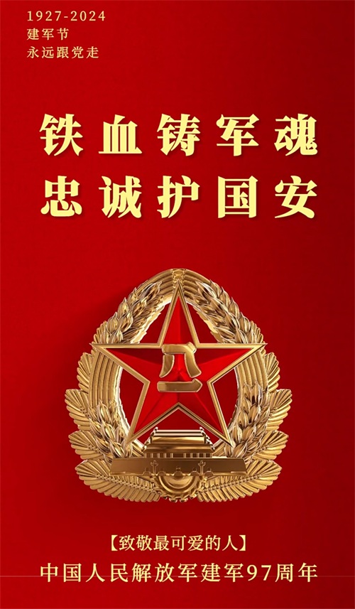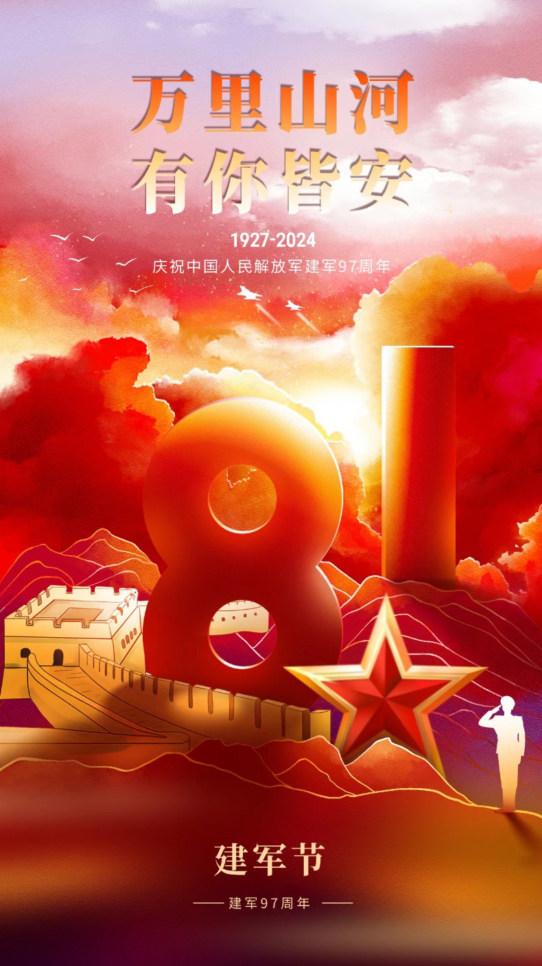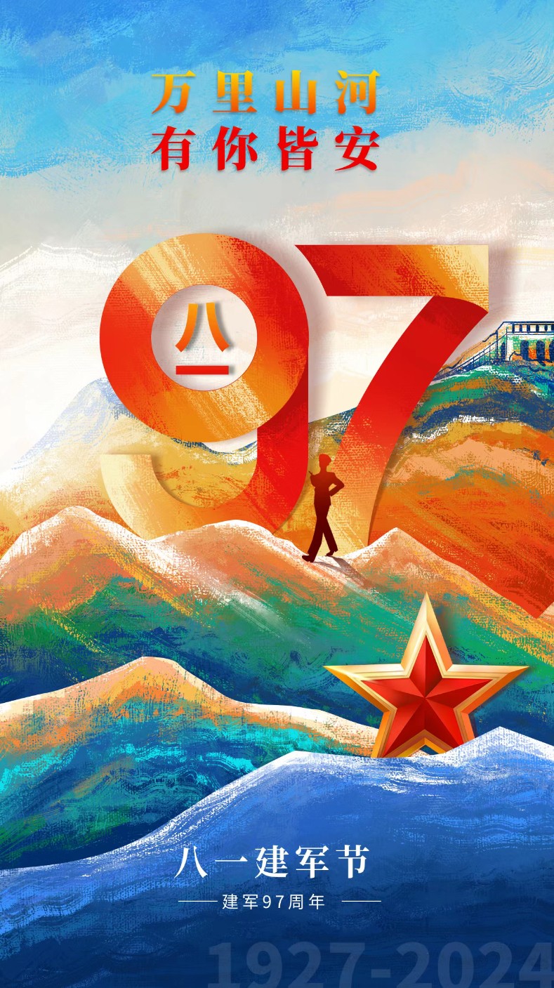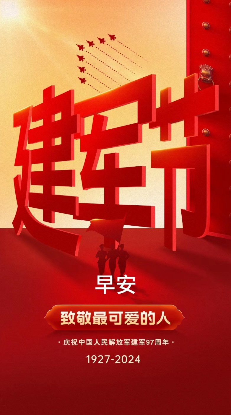早上好,今天是8月1日,八一建军节,热烈庆祝中国人民解放军建军97周年,不忘初心,牢记使命。以爱之名,致敬每一位军人!