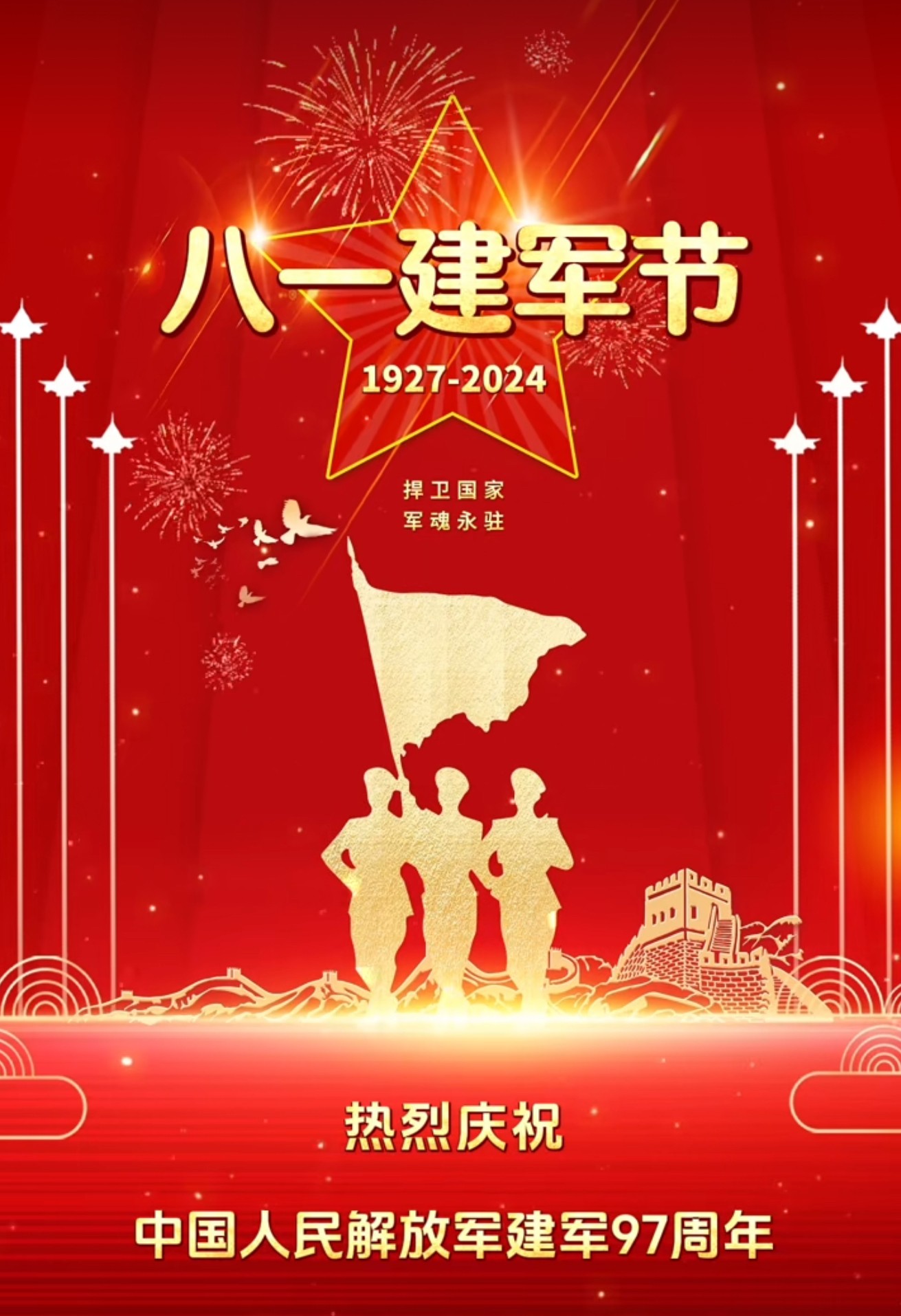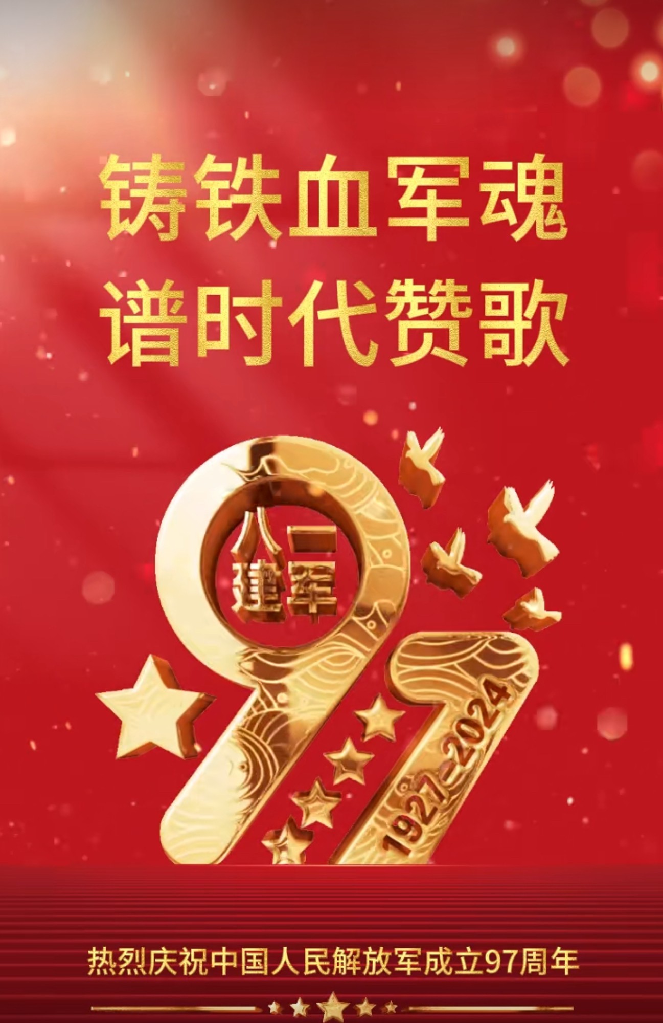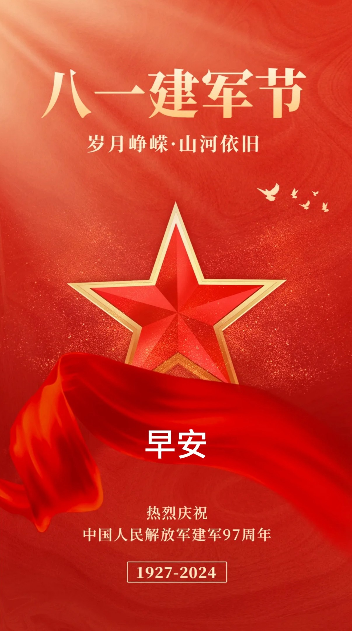 2024年8月1日建军节早上好图片 八一建军节早安祝福图片 铁血丹心