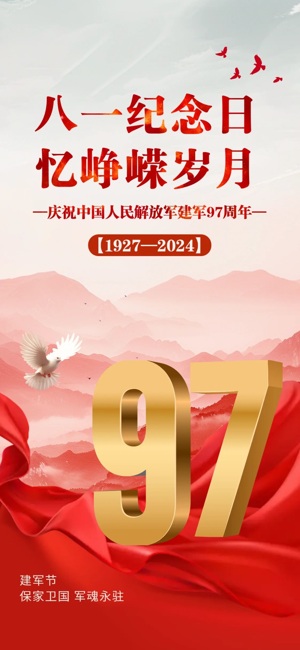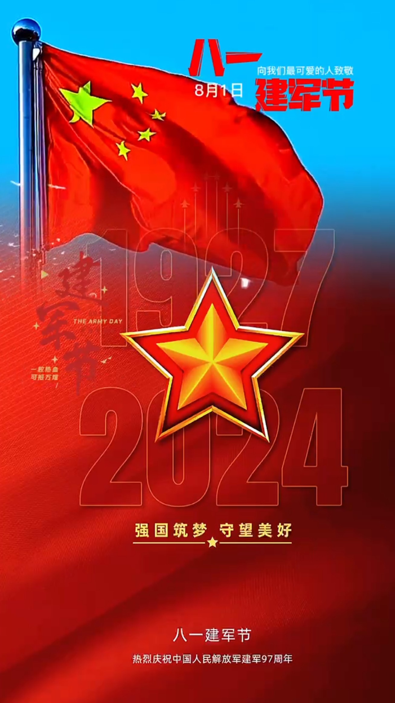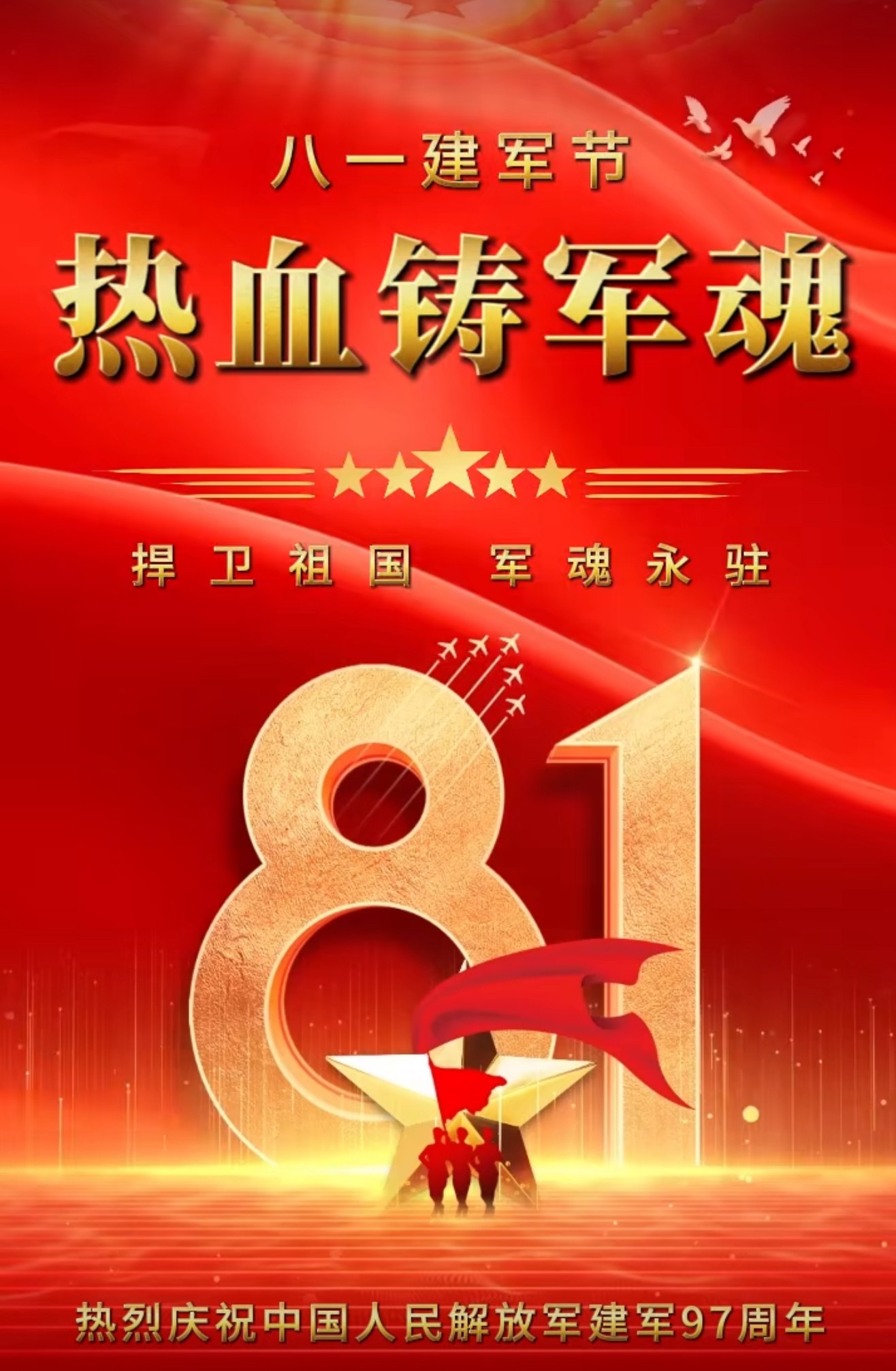2024年8月1日建军节早上好图片 八一建军节早安祝福图片 铁血丹心