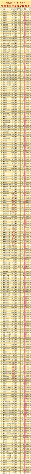 想要了解一个城市的房价情况,直观一点就是看数据,笔者已经为大家准备好了2025年1月1日至3月5日的宝鸡市二手房的成交明细(具体看最后两张图片)。