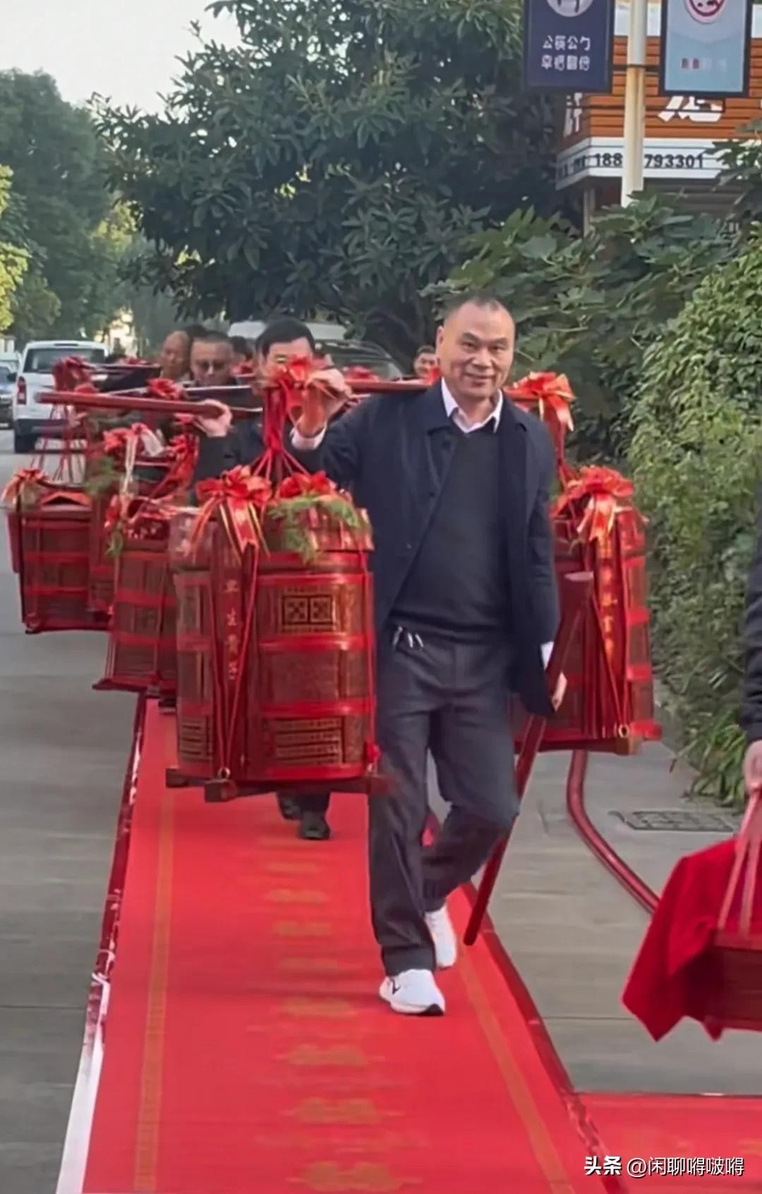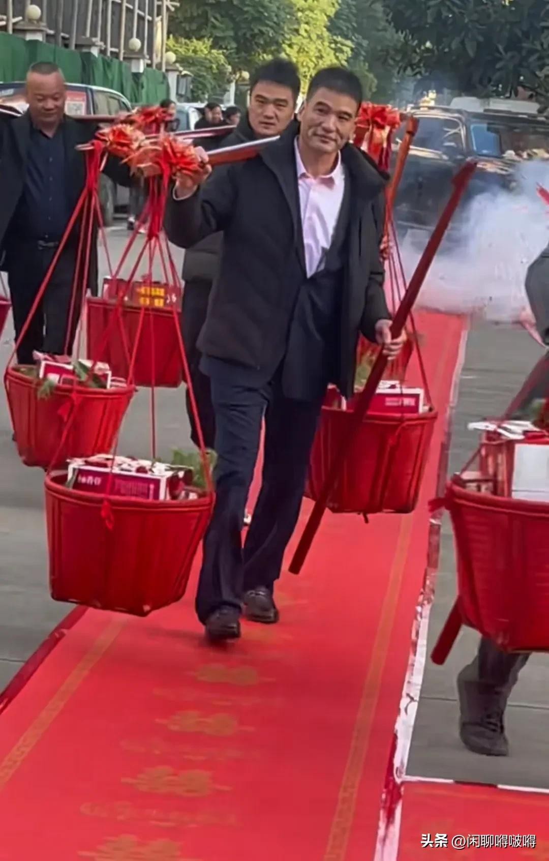 近日,看到这样一大队人马:一名高大帅气又英俊的男子西装革履,手捧一捧鲜花,身后跟着一大队人马。