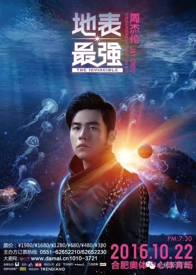 2016周杰伦“地表最强”世界巡回演唱会合肥站8月24日(周三)下午2:00全面开票购票网站:大麦网、永乐票务