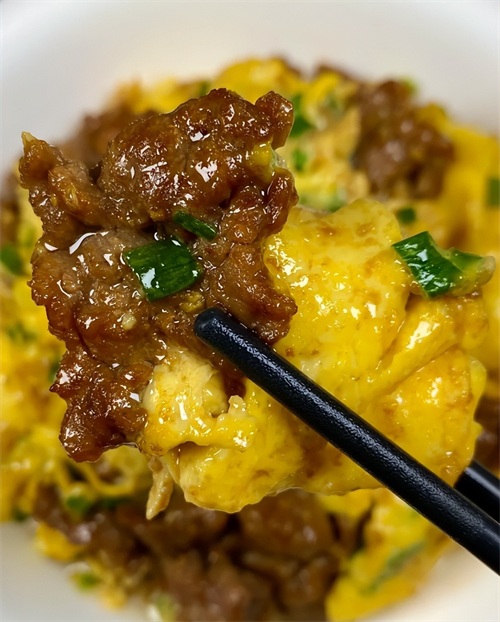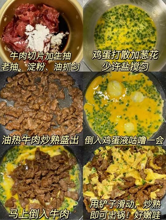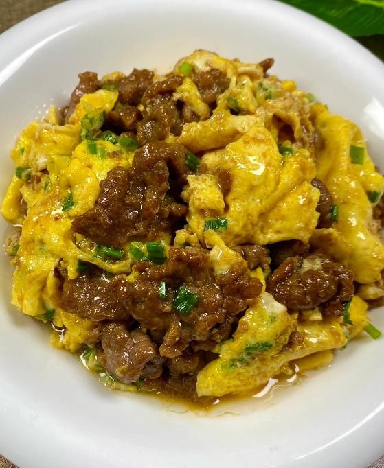 这道牛肉滑蛋太好吃了,牛肉滑嫩多汁,鸡蛋鲜香,搭配上葱花葱香味浓郁,巨下饭。