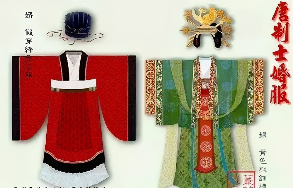 而服饰上的“红配绿”早在盛世大唐就有迹可循,在当时还没有男女双方都得穿大红色礼服这一说,新郎的礼服是绯红色的,而新娘的礼服是青绿色。没错,这种在我们现代人看来是死亡配色的大面积红配绿,在唐朝却是极为正式和庄重的搭配。