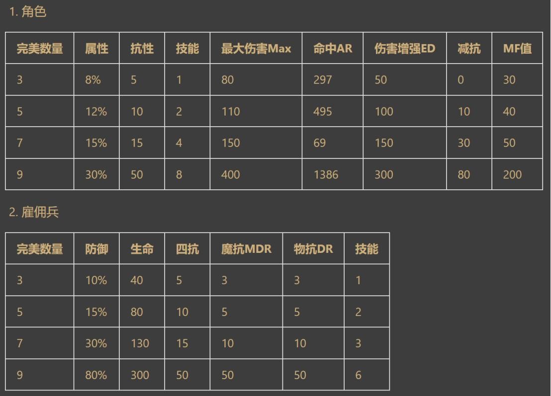 完美装备加成效果