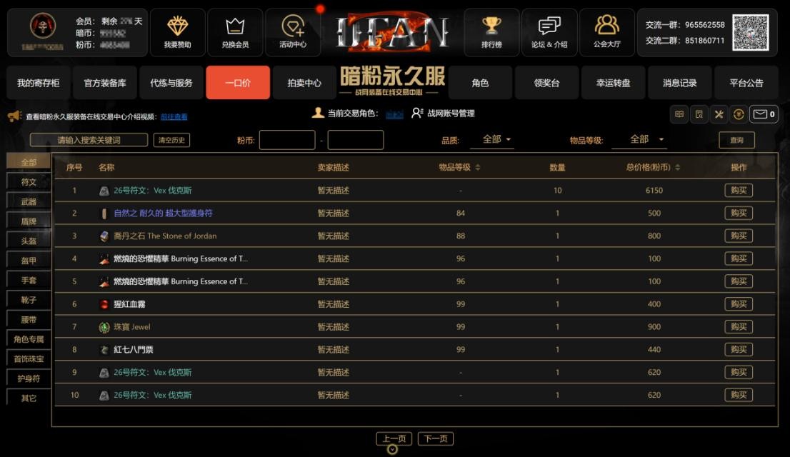 另外,暗粉战网的交易中心功能也十分亮眼,实现了全自动交易。玩家注册绑定账号后,就能轻松地将装备提取到交易中心售卖,即便自己不在线,别人也能购买,购买后还能直接提到储物柜,同时还可回收装备换粉币,并且能查看天梯排行、别人的装备技能加点等内容,互动性很强。
