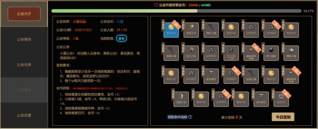 一般来说,玩暗黑2的玩家都是孤单的MF,哪怕是在战网,也形单影只,出了货的喜悦没有人分享。暗粉的公会机制,不仅完美的解决了兄弟一起游戏的问题,还能一起带动公会升级,随着公会等级的提升,还能获取到更强大的公会徽章,所有会员一起享受努力的成果。