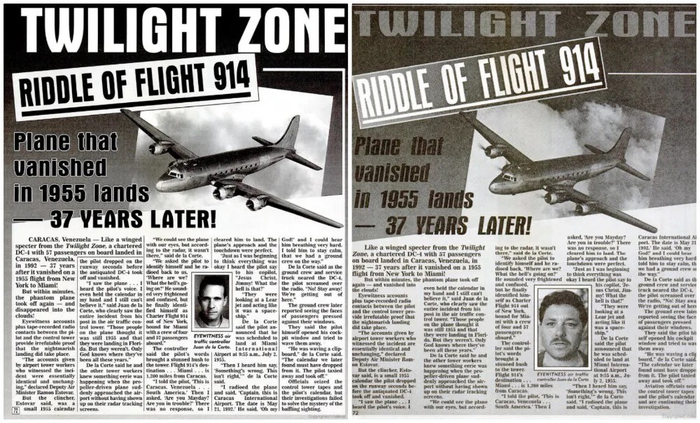 而后来的几年间,又先后两次在1993年和1999年,重新报道过航班穿越事件,而报道只不过是简单把事件时间、地点、人物修改了下,事件的大致脉络完全雷同。