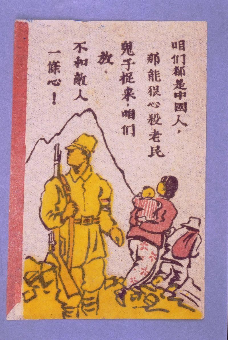 他发现多数日军士兵识字能力不强,但图像敏感,于是亲自设计、绘制了一批专门针对日军下层士兵的宣传单。