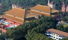 华西艺术博物馆背靠龙沙山,总面积达1万平方米,整个仿古建筑融合了故宫的太和殿、乾清宫、角楼、红墙等元素。