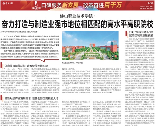 佛山职业技术学院:奋力打造与制造业强市地位相匹配的高水平高职院校