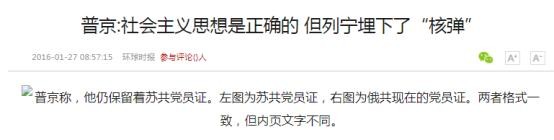 1、环球时报:普京:社会主义思想是正确的 但列宁埋下了“核弹”
