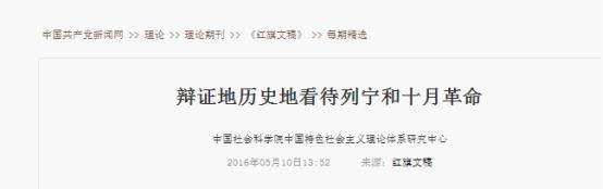 2、中国社会科学院中国特色社会主义理论体系研究中心:辩证地历史地看待列宁和十月革命