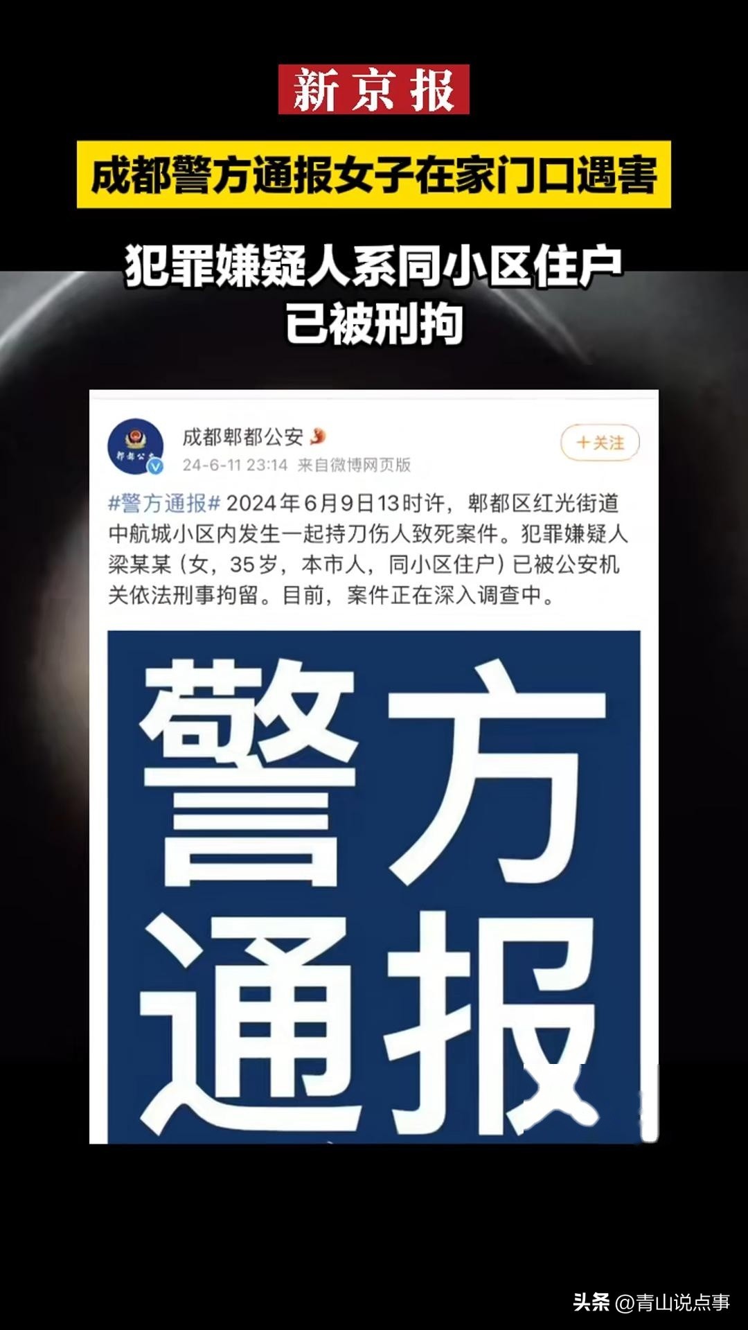 后续!成都27岁女子被刺身亡,警方通报,知情人透露更多内情
