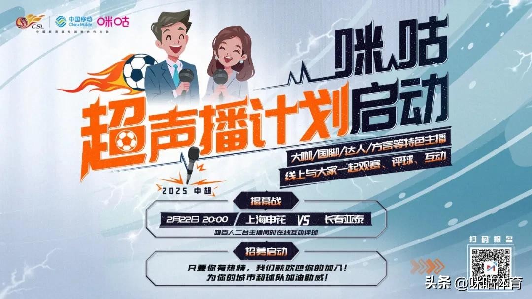 2025赛季中超,咪咕将邀请更多创作者参与解说和内容创作,特启动超声播计划。